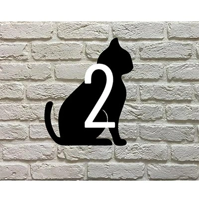 Domestic short haired kat silhouet huisnummerbord